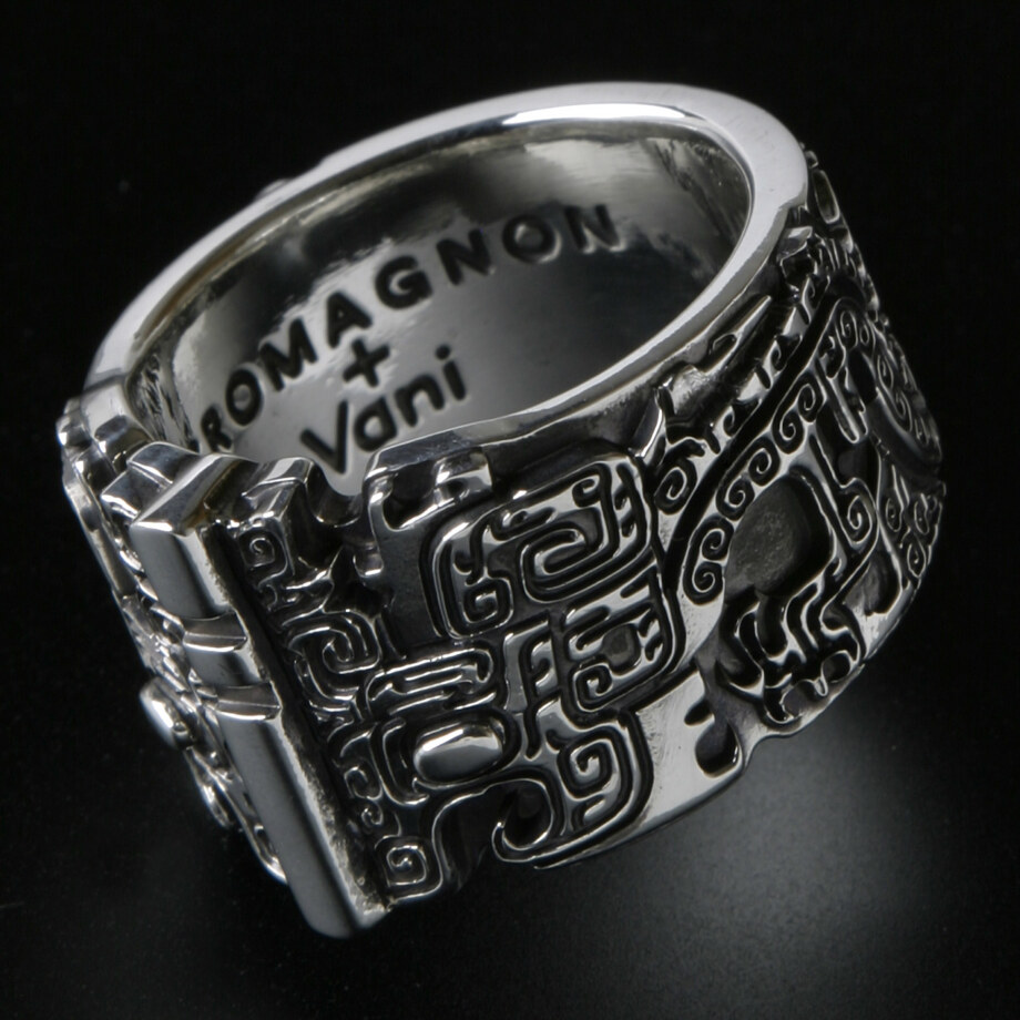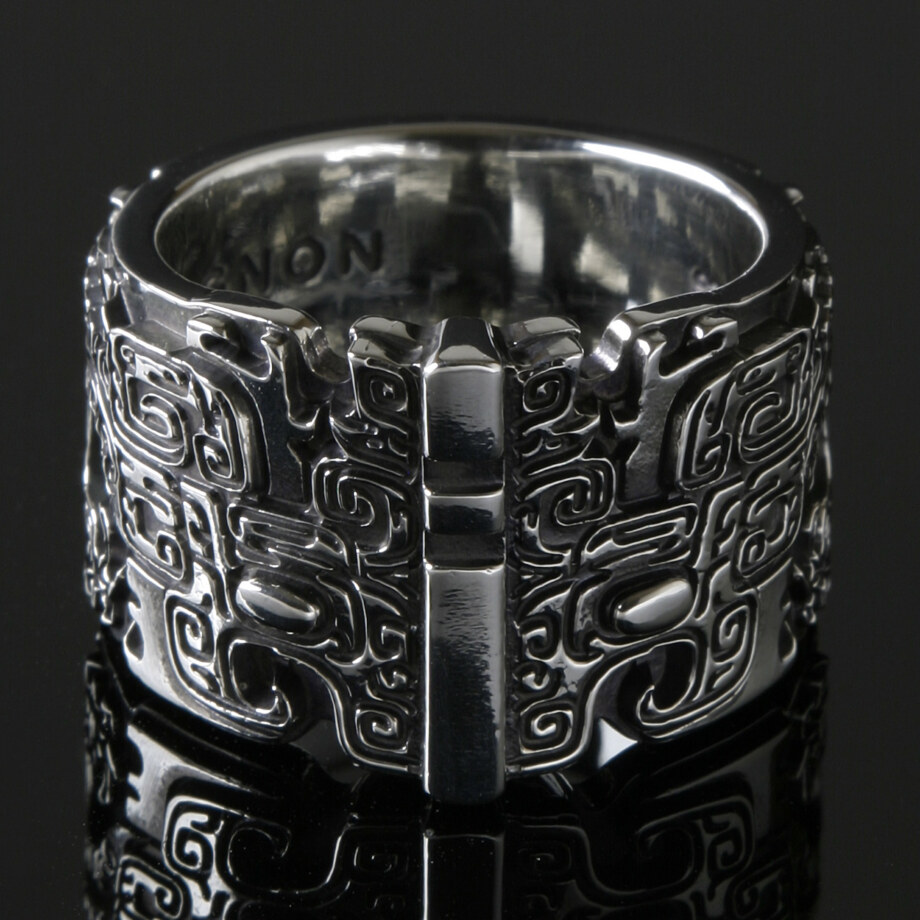古代の青銅器に現われる龍をテーマにしたシルバーリングです。