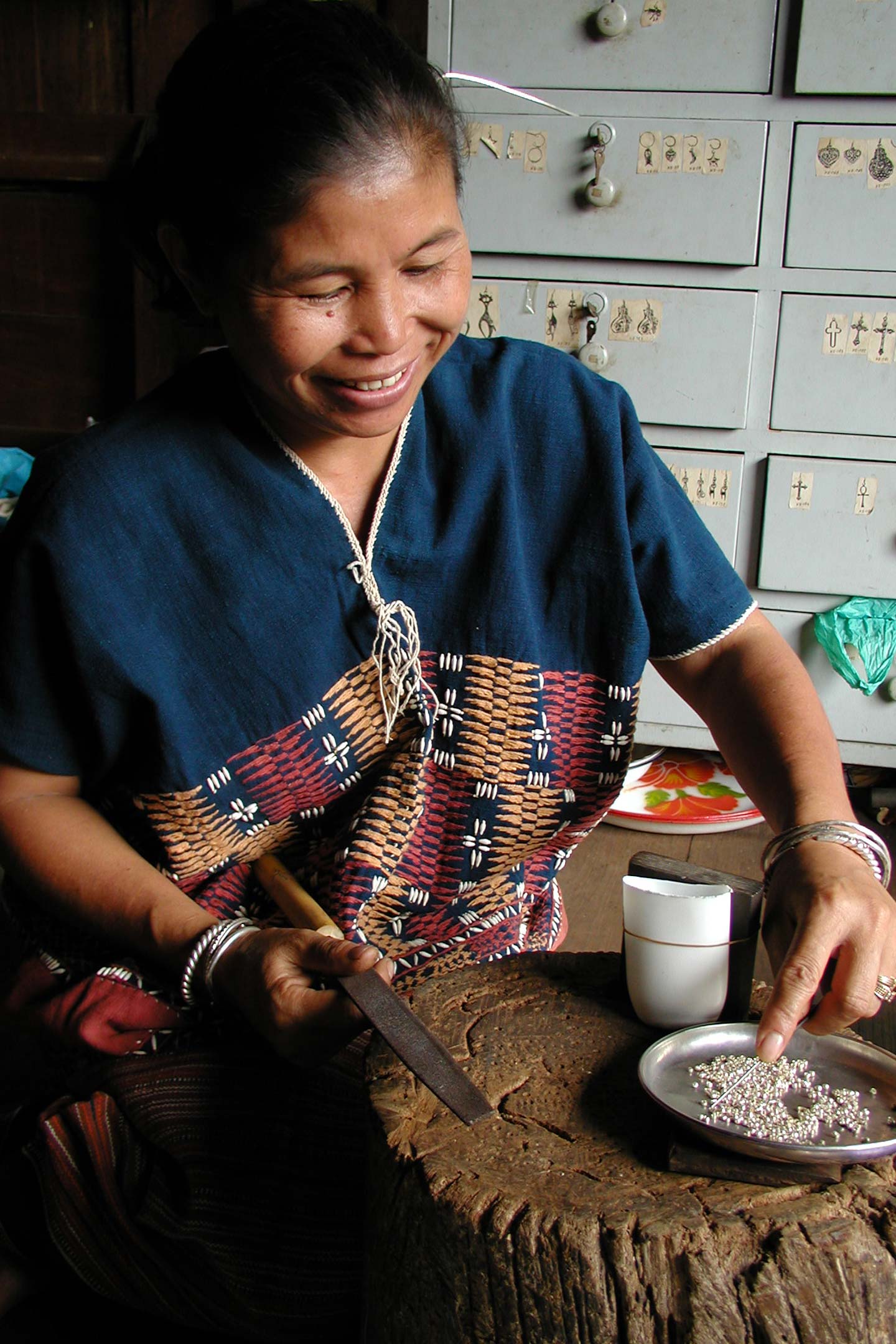 貧しく生活が苦しかったので現金収入を得るため、町で自分たちが作ったカレン族伝統の銀細工や装飾品を売ってみることにしたんです。