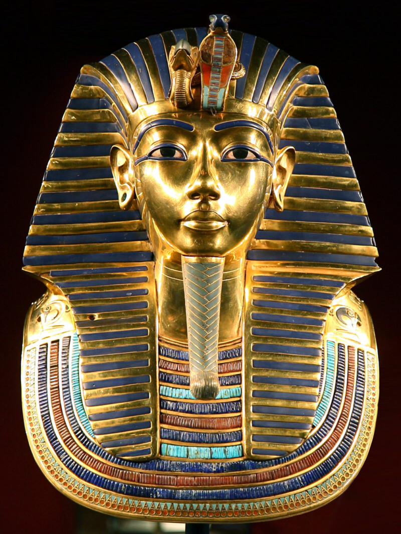 有名なところでは、ナイル河畔の町ルクソールの対岸にある王家の谷で発見されたツタンカーメン王(紀元前1350年頃)の黄金マスクにラピスラズリが使われ、当時のままの美しい金と青のコントラストを見ることができます。