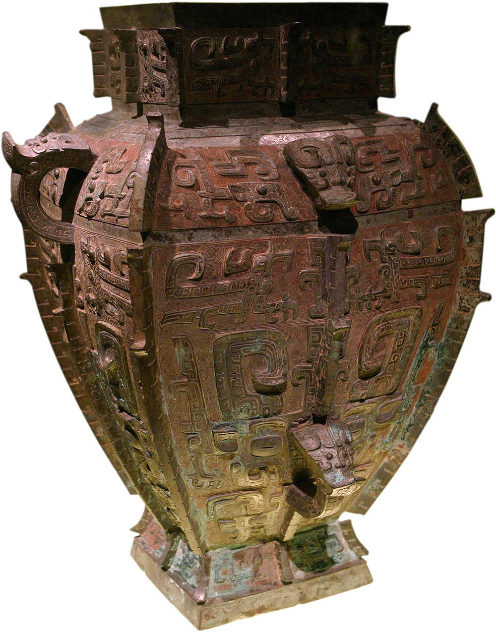 中国の青銅器芸術はこの頃に一種の頂点を極め、龍や鬼神の奇怪な抽象的文様を施した青銅器が多数製作されました。