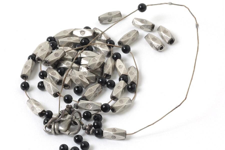 ステンレスワイヤーが小さく丸まってしまうほど折れ曲がっていましたが、黒化したフック部分を除き、間のシルバービーズは比較的黒化せずきれいな状態を保っています。きっと大事にお手入れされていたんだと思います。